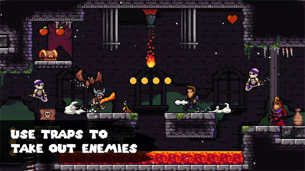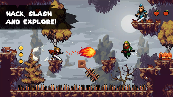 苹果骑士是一款动作横版闯关类游戏,玩家将会操作一位骑士来完成自己的冒险,骑士的动作性能比较强,可以利用各种攻击手段来将地图上的怪物给消灭,并且怪物的种类有很多,每种怪物的对策方式都会有所区别,武器的属性值能够帮助玩家提升战斗力,都可以在商店当中购买,玩家在打怪时会掉落金币,商店当中的所有物品都是需要使用金币来购买的,游戏同时也有着完整的剧情可以体验。