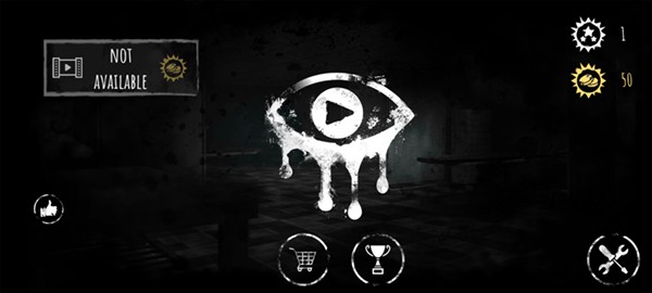 进入到整个游戏,游戏界面很简单,一直流血的眼睛,还有【开始】按钮,还有一些其他按钮。我们一一说起。