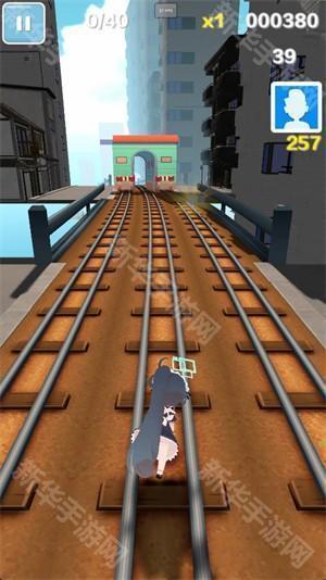 3、正式开始后左右滑动可以更改轨道,向上滑动是跳跃,向下滑动是翻滚。
