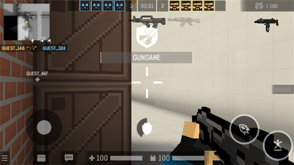 碉堡射击最新版是一款动作射击类游戏,玩家可以在一个由方块所形成的碉堡当中与对手们一较高下,使用各种枪械武器来提升自己的战斗力,武器的种类会分为许多,每把武器都有其对应的优势,所有的武器全部都采用像素的样式,通过加装配件的方式可以让武器的属性值获得提升,游戏的地图数量很多,玩家可以利用地图的优势来找到最为有效的点位,从而为自己创建对枪优势。