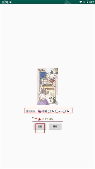 3、然后选择压缩系数,输入带有小数点的秘钥,然后点击加密;