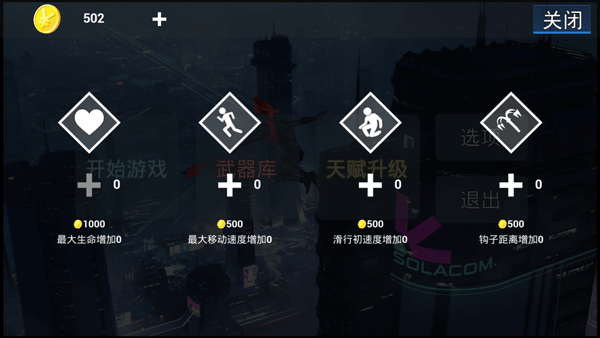2、右侧是钩子、跳跃、极速跑、潜行、攻击这几个选项,上方是跑的里程数,滑动左下角轮盘开始跑酷