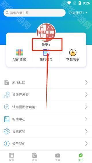 1、首先从本站下载小米手环表盘自定义工具App,打开,选择“关于”。