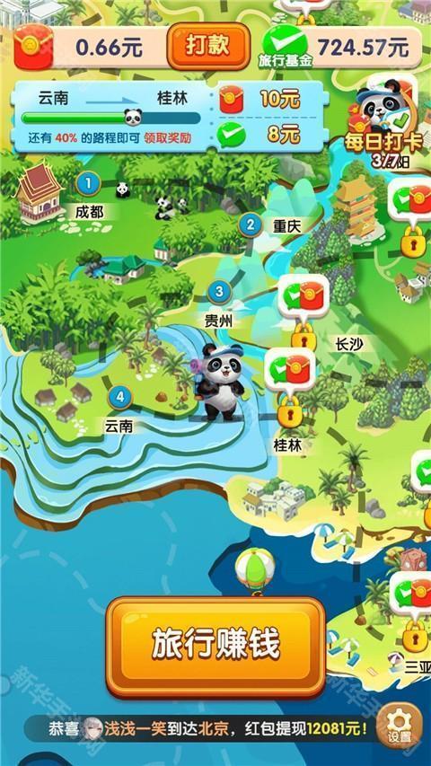 《熊猫爱旅行红包版》这是一款很经典的一款红包小游戏,玩家将要在这款熊猫爱旅行红包版游戏里面完成各种有意思的消除冒险的任务,此外,这款熊猫爱旅行红包版游戏里面还有着非常多的有趣故事,无论是各种新奇的红包奖励,亦或者是各种金币、钞票奖励,都能让玩家拿到手软,喜欢的玩家快来下载这款熊猫爱旅行红包版体验一边玩游戏一边赚钱的快乐吧!