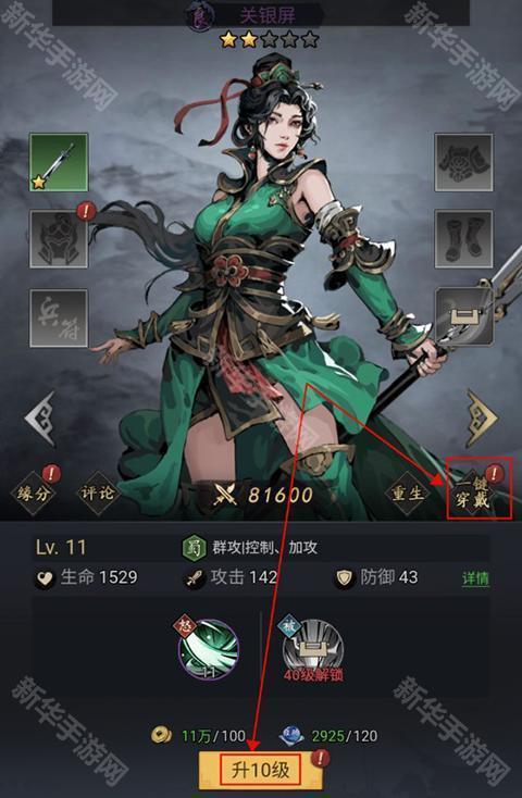 2、玩家在获得武将后可以对武将进行升级、穿戴装备等,提升战力。