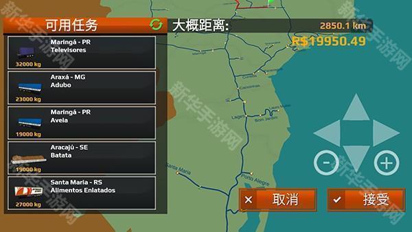 3、里面有各种各样的货运任务,可以查看到各个任务的运输里程、货物重量以及报酬等,点击右下角接受任务即可。