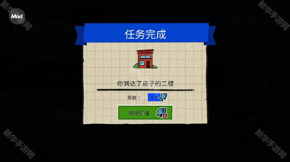 3、屏幕右上角不断闪烁的猫咪手表是每一章节的任务介绍,完成任务后可以获得鱼干奖励,用来解锁后续场景与道具。