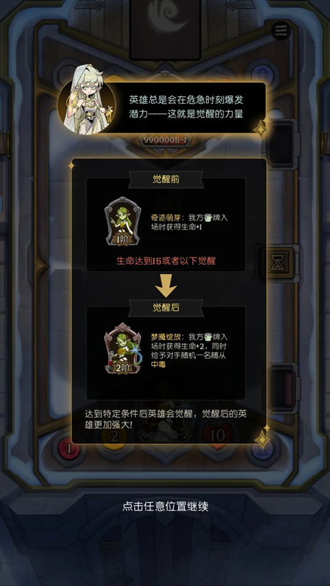 1.九位英雄一个接一个地出现,他们有独特的觉醒形式和技能,当他们的健康降至临界值以下时会触发。
