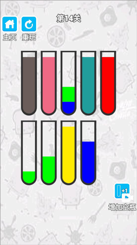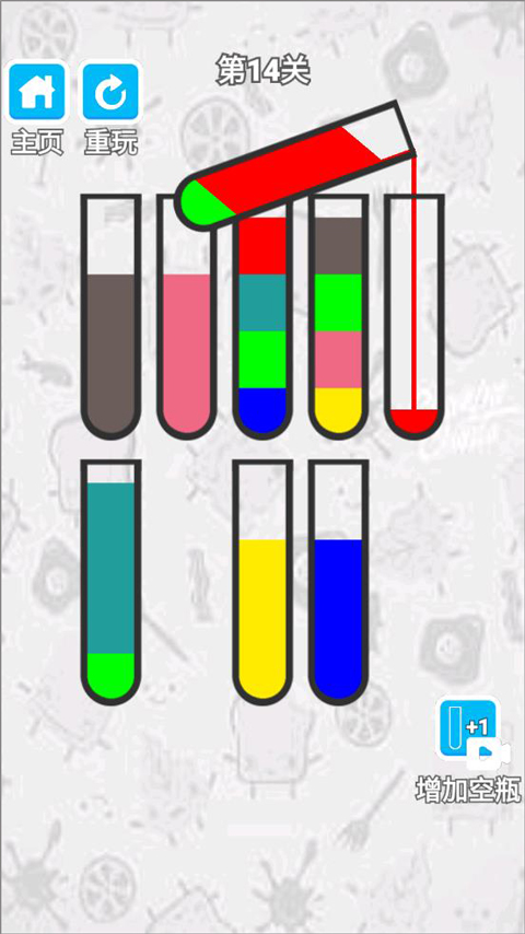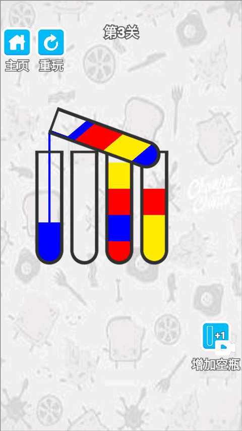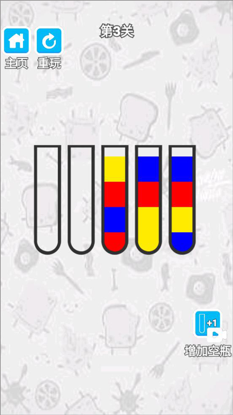 2、未设时间限制,可静下心仔细观察试管中液体分布,慢慢琢磨倒水顺序与策略。