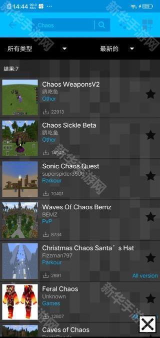 4、如果混沌模组没有用就把它的资源包和行为包放到最上面。你学会了吗?第一张图是混沌模组搜在这个软件里搜索Chaos第一个。