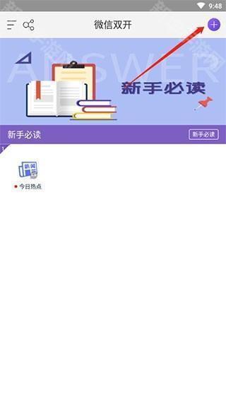 1、打开微双开分身在主页面右上角有个加号,点击加号。
