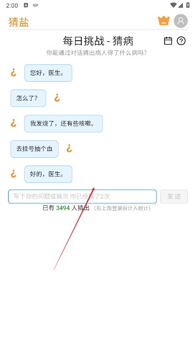 1、与AI进行问答,通过AI对自己病情的描述,来猜测AI得了什么病。