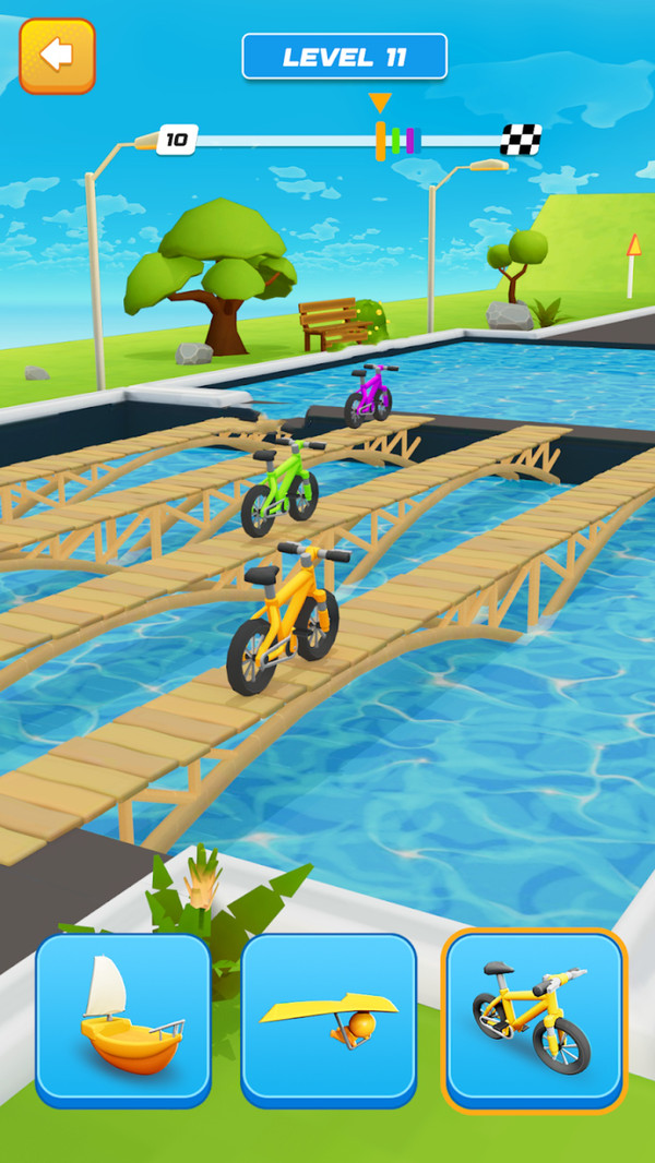 3、你需要在赛道上不断前进,根据不同的地形和障碍,迅速切换自己的形态。