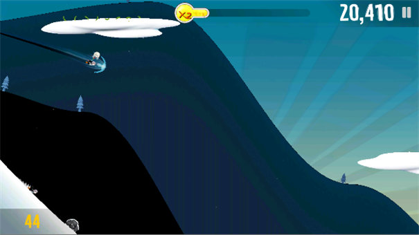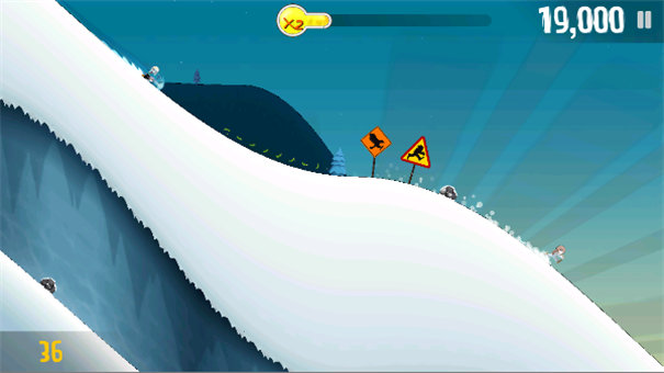 3.滑雪时可以使用各种环境场景,各种动物和道具可以帮助你跑得更远。