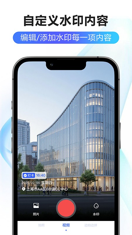 3.更专业的水印允许您自由选择,使用户更容易高效地打卡和记录出勤情况。