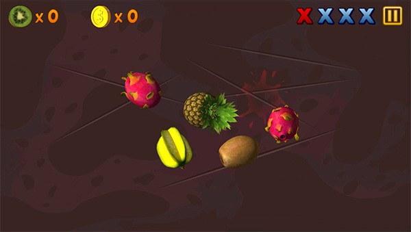 4、通过手指在屏幕上滑动来控制刀具的切割路径,切割到水果将获得分数。