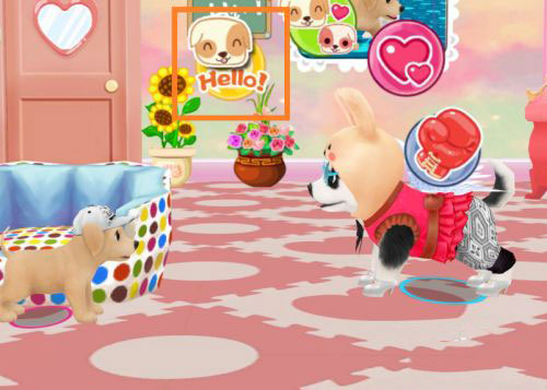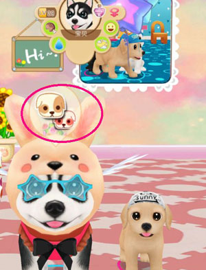 5、进行访临后,点触小狗的形廓,顶处会显露这样的圈钮,能使它们一块完成很多动作哟。