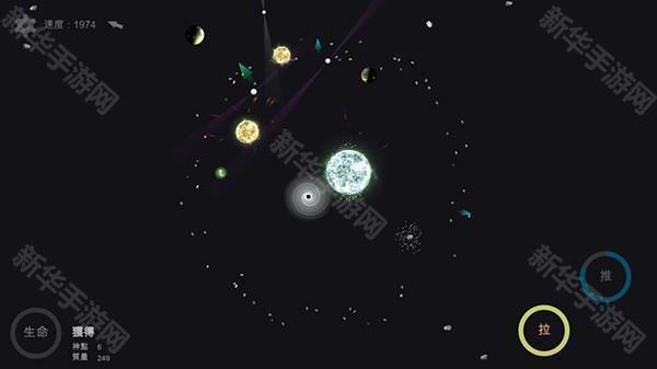 2.你的任务是探索无尽的宇宙,通过发现和“捕捉”其他游荡的行星或星系来提升自己。