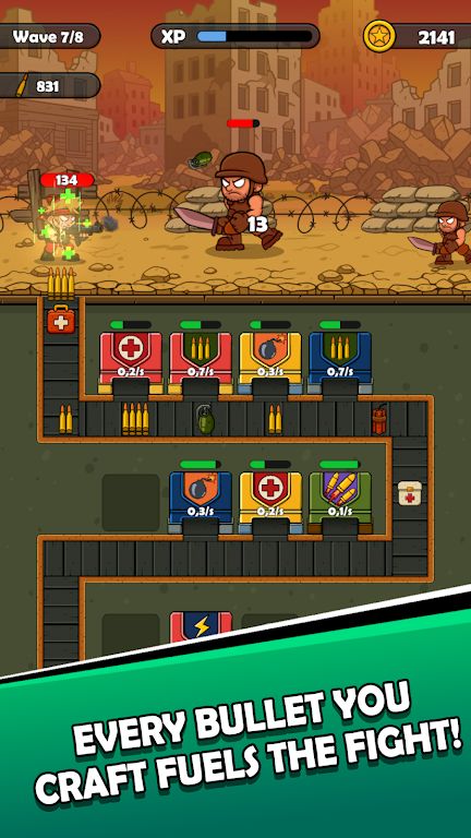 弹药组装是一款策略闯关游戏。玩家需要解锁各种弹药盒,并将其放置合适的位置,通过传送带来传送弹药给英雄,让英雄上膛攻击敌人,因此弹药的种类以及威力都将影响最终的战斗局面。玩家可以通过合并升级弹药盒,解锁更多弹药来帮助英雄战斗!