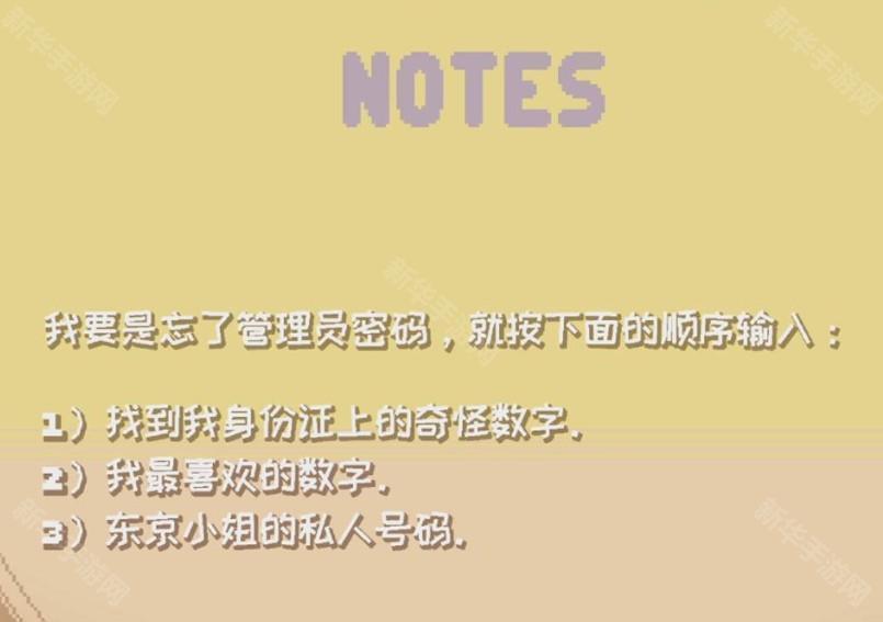 1、破解密码需要找到身份证上的奇怪数字、最喜欢的数字和东京小姐的私人号码。