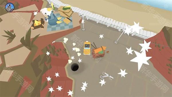 8、将爆米花吃掉。黑洞体积变得很大,就可以随意吞噬啦!最后把烟花车吃掉,地洞会冒出大量黑烟,最后在黑色的夜空中,一直鳄鱼在看着绚烂的烟花。