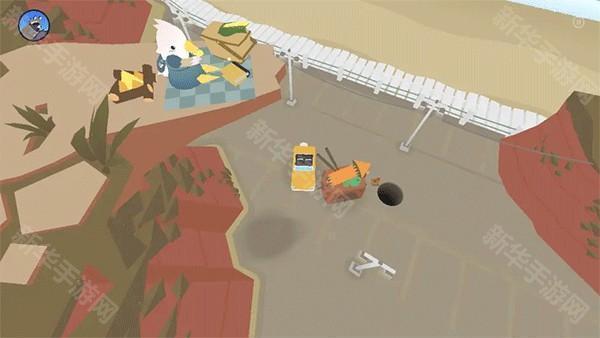 7、大鸟旁边的篮子里装着玉米、还有一个火堆。掉下来以后一起吃掉,地洞就又会爆出很多的爆米花。