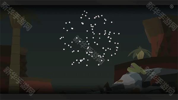 6、山上坐着一只大鸟,还是按照一样的步骤,点燃烟花,吞掉,移动到山下黑色影子的地方,烟花轰炸白色的大鸟。这个步骤需要重复2到3次,最终山崖会被轰断,大鸟掉下来。