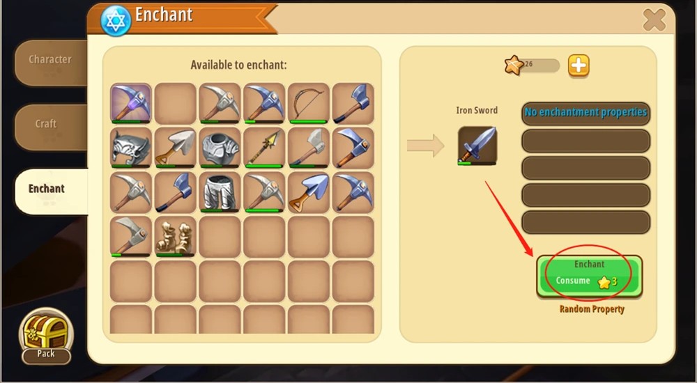 2、然后单击/点击您想要附魔的装备或武器。单击“附魔”按钮可为武器/装备提供更强的增益。