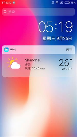 2.提供内部天气和时间小部件,可长按拖动到屏幕。