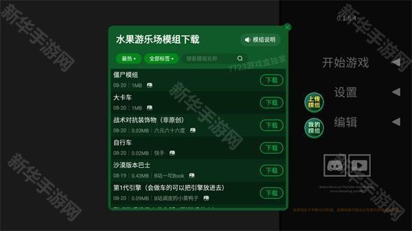 2、打开模组列表好,玩家可以通过名字搜索想要的模组,当然还能打开查看其具体信息,也能上传自己的模组。