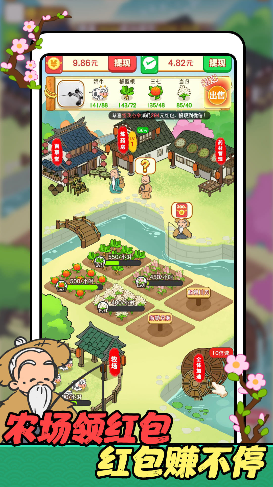 1、种田养殖,佛系生活,躺平赚红包,超丰富的玩法等你体验。