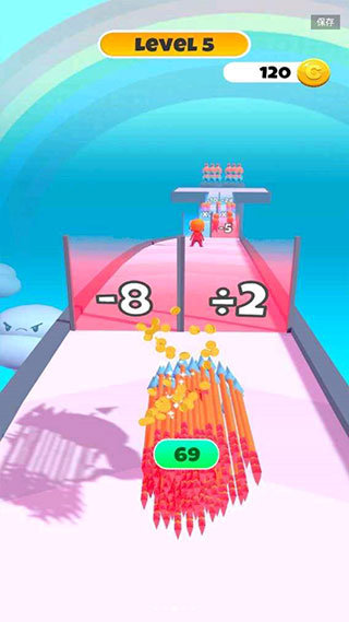 2、引导箭头触碰【+20】【+10】等增益,增加数量,提升闯关优势。