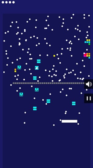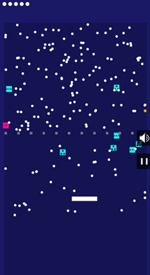 4、这个游戏的技巧在于把小白球打到两排方块的中间,例如下图,会使它掉不下来,会一直在上面反弹!