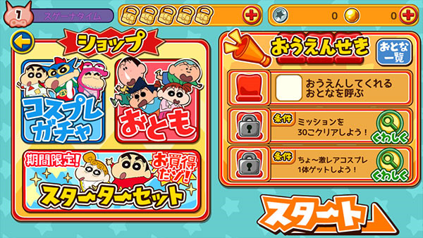 1、玩家可以轻松地将自己投入到游戏中,体验蜡笔小新的世界。