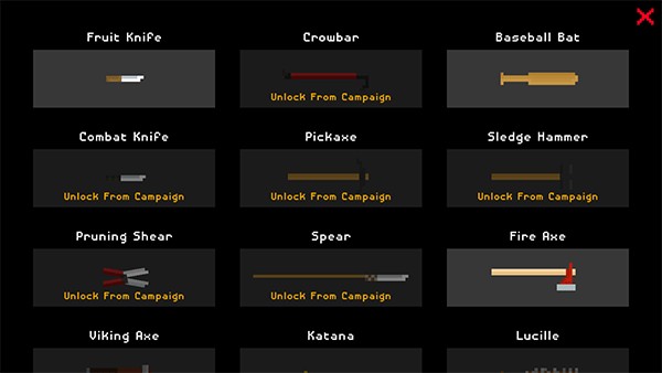 棒球棍,斧头,锤子,日本剑,电锯,光剑等。