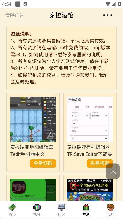 6、在福利栏则是有着各种泰拉瑞亚模组和游戏本体包以及存档等等,你可以根据自己的需求下载