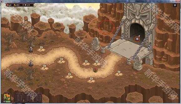 还是第五关发条厂点击右下角熔岩上的一小块地上的戒指后,后面会出现一个哥布林半掩着漏出脸说“My precious!(我的宝物!)”再点它它会跳到那块地上,再多点几次把它弄下去