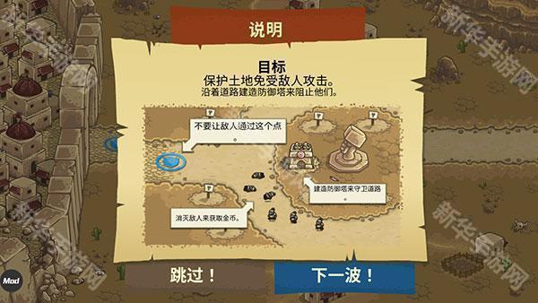 3、我们的目标是保护土地免受敌人攻击,建造防御塔来守卫道路,消灭敌人获得金币;