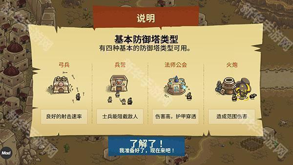 5、基本防御塔类型有四种,分别是弓兵、兵营、法师公会、火炮;