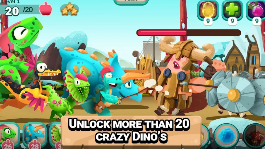 在每个级别,您将解锁新的恐龙,每个都有自己独特的能力和个性(其中一些只是很奇怪)。让我们不要忘记升级 - 用最新的史前时尚装扮您的恐龙,包括时尚的帽子和战斗盔甲。