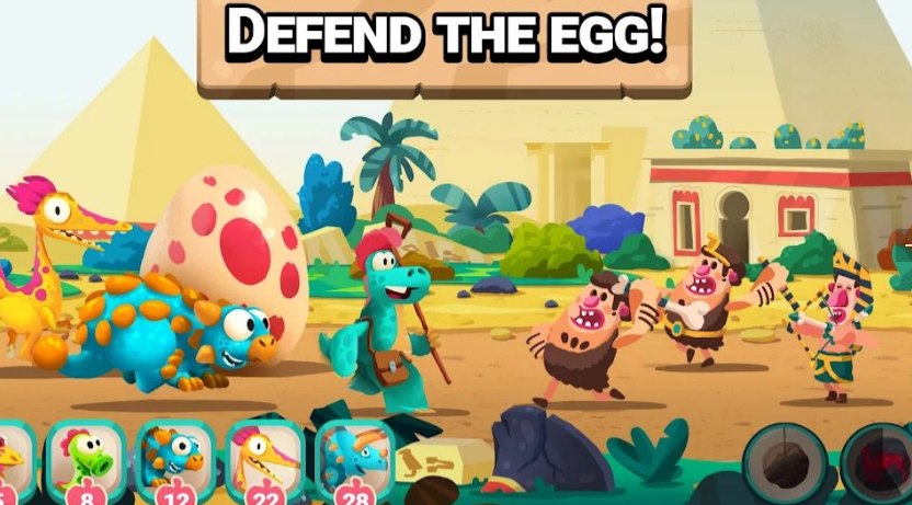 2、巧妙地部署你的恐龙,抵御入侵者,保护你的资源。随着关卡的推进,用时尚的帽子和战斗盔甲升级你的恐龙。