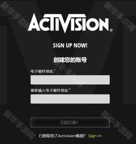浏览器搜索动视(Activision)官网,注册页面点击创建账号,输入自己的电子邮箱