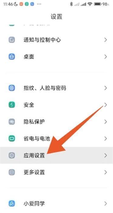 1、首先需要用户在小米手机当中点击【设置】,找到【应用设置】这一项,如下图所示;
