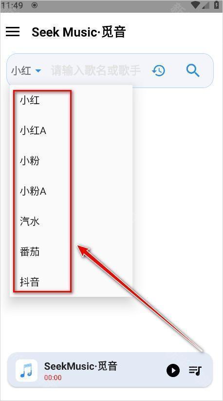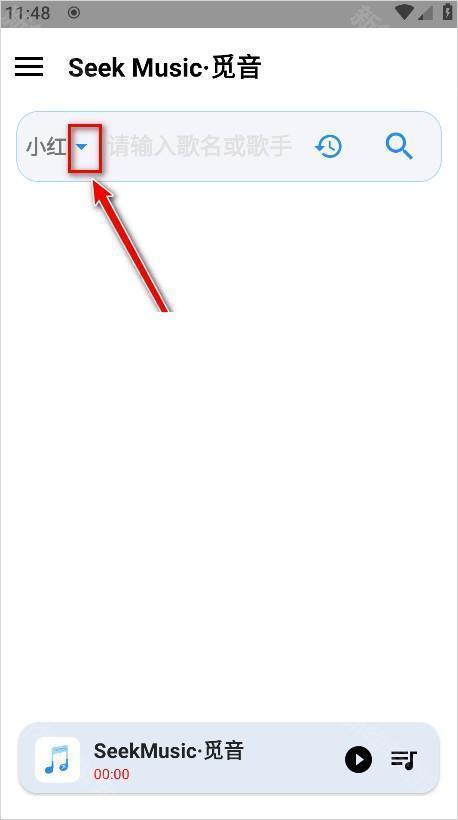 1、进入觅音音乐,点击点击小红右边的展开按钮。