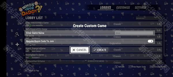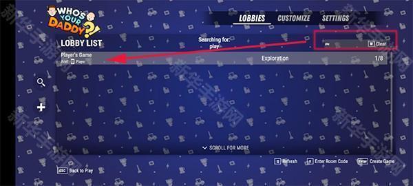 5、想要加入房间的玩家也可以在自定义模式下,搜索房间名称并进入游戏。