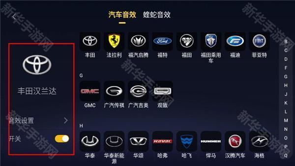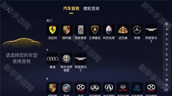 2、进入音效设页面,选择你的车型,可以根据你的车型使用音效