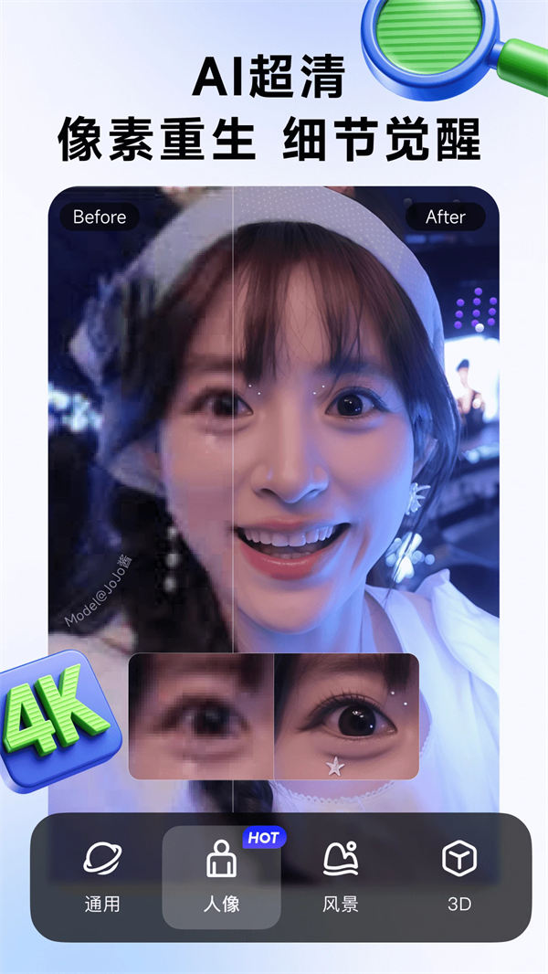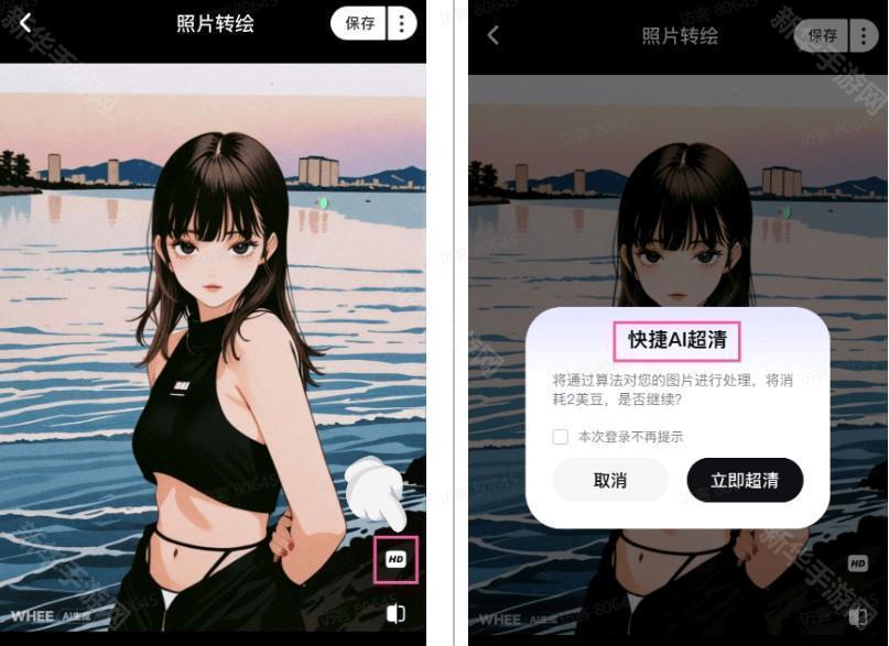 觉得图片不够清晰?别担心,点击右下角的「快捷AI超清」让你即刻拥有超清质感美图!