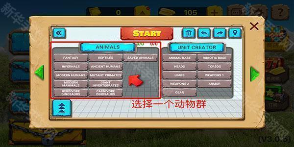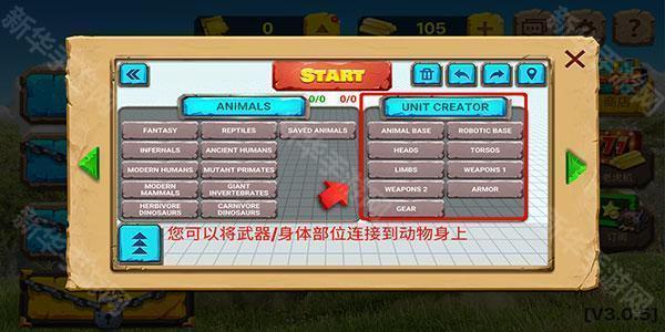8、单位菜单的右侧部分是动物创建功能,您可以将武器/身体部位连接到动物身上。