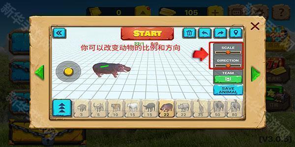 6、放置好后,你还可以在右侧改变动物的比例和方向。