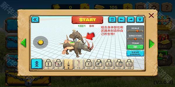 霸王龙、棘龙、三角龙、老虎、熊、大象、犀牛、狼人、牛头怪、双足飞龙、九头蛇、斯巴达战士、弓箭手、泰坦巨蟒、巨型鳄鱼、地狱犬、巨型昆虫、骷髅战士等等和玩!恐龙、奇幻生物、变异灵长类动物、恶魔怪物,你都可以在这里找到!你甚至可以在动物身上附加武器。